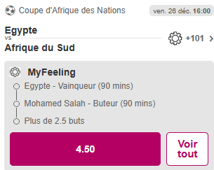 ➡️ Egypte – Benin : Mohamed Salah @2.02