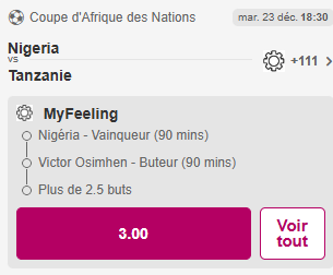 ➡️ Nigéria – Tanzanie : vainqueur Nigéria @1.38 ✅