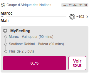 ➡️ Maroc – Mali : vainqueur Maroc @1.48