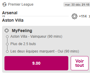 ➡️ Arsenal – Aston Villa : Aston Villa vainqueur @6.40